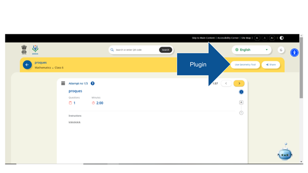 When the user plays the content/ collection/ Question set collabgeo plugin would be available. On click a separate new tab will be opened with all the existing functionalities. Close button would be available. Instead of the close button, it would the button would be replaced with the Back to DIKSHA. Content created by the user will not be retained. Plugin will be available on the consumption portal from class 5 to Class 9.